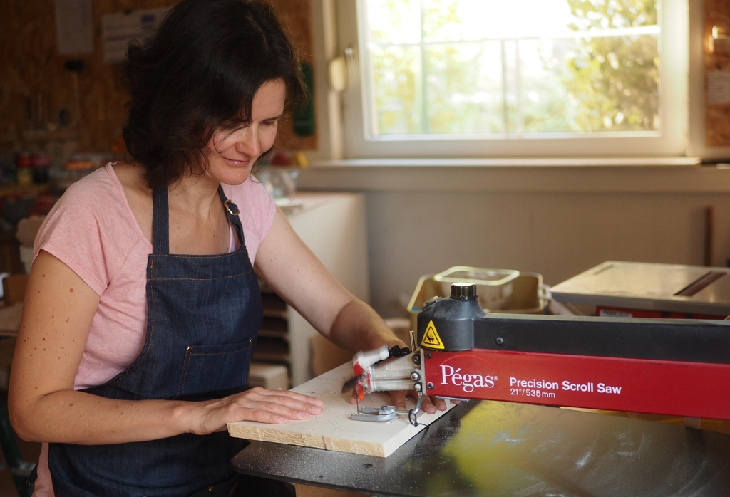 Je me suis formée en chantournage et en peinture décorative. Je travaille mes créations de nombreuses fois jusqu’à obtenir le rendu qui me satisfait pleinement.